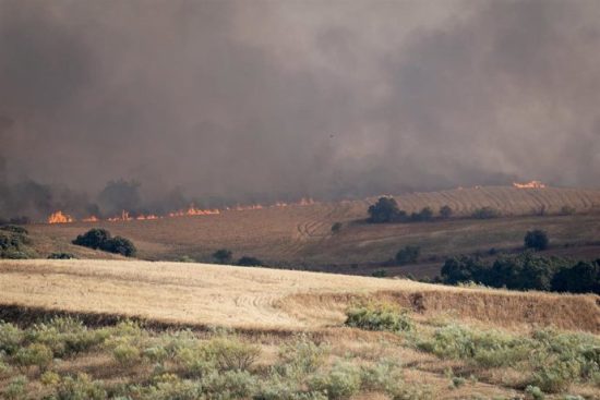 Un total de 26 medios y 95 personas siguen trabajando a esta hora en las labores de extinción del incendio originado en la localidad toledana de Méntrida, que sigue en nivel 2 y que podría haber arrasado ya 3.200 hectáreas.