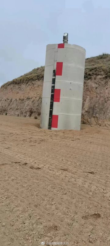 En las imágenes se puede observar una estructura metálica alojada verticalmente sobre suelo recién labrado con una altura de 6 a 8 metros.