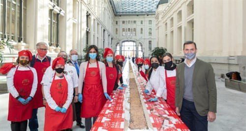 En la realización solidaria del proclamado como ‘turrón de chocolate más grande del mundo’ ha participado la vicealcaldesa de Madrid, Begoña Villacís, acompañada por el director general de Turismo, Héctor Coronel.