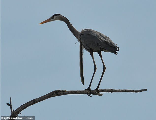 «Horror moment eel bursts its way out of heron’s throat while it’s flying away» Yeah, headline (from Daily Star) speaks for itself. Photos are from Maryland. Heron survived. Photos Mr Sam Davis. #birds #birdsvsfish #eels #animals pic.twitter.com/JoPQMcvMVv