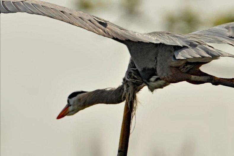 Un fotógrafo aficionado captó el espectacular momento en el que una anguila atravesó la garganta de una garza en pleno vuelo. El ave había capturado el pez y este escapó de sus fauces atravesando su cuello