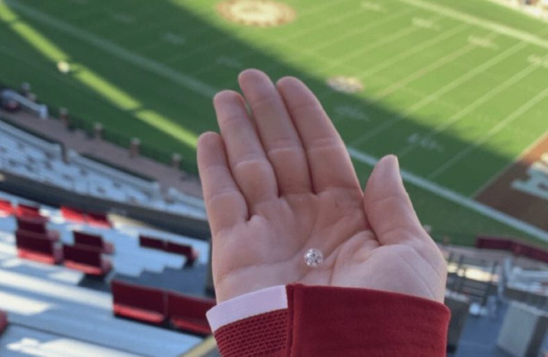 Una empleada del Bryant-Denny Stadium de la Universidad de Alabama encontró en tan solo 30 minutos un diamante extraviado por una pareja que acudió al recinto para ver un partido de fútbol americano.