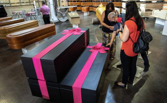 En el marco de la 16 FunerMostra, Feria Internacional de Productos y Servicios Funerarios que se llevó a cabo del 20 al 22 de octubre en Valencia, algunas funerarias aprovecharon el éxito de “El juego del calamar” y presentaron ataúdes como los que aparecen en la serie.