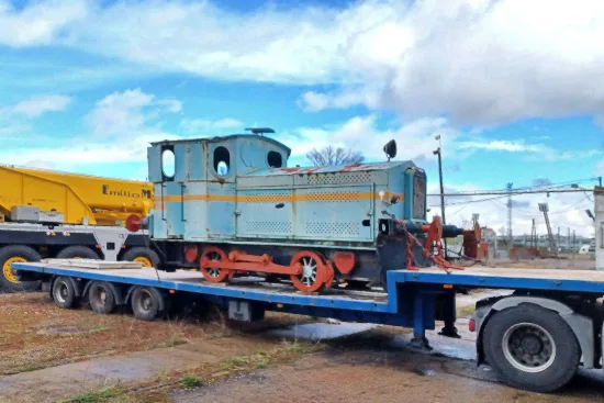 Obtenida su titularidad por la Fundación del Patrimonio Ferroviario, se ha planificado y llevado a cabo la oportuna operación logística con el fin de trasladarla para su restauración. A este fin, y con base en los medios técnicos necesarios, ha tenido lugar, de forma totalmente satisfactoria y sin incidencia alguna, el traslado a talleres de esta histórica pieza del patrimonio ferroviario industrial español.