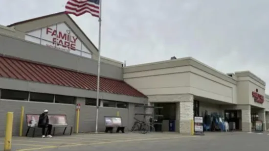 La tienda Family Fare está en una zona comercial con un letrero en forma de triángulo en la parte superior del edificio. La estructura del letrero, probablemente de 1,5 metros de ancho y 2,4 metros de alto, tiene una puerta y es accesible desde el techo, explicó Warren.