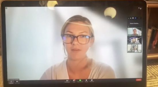 Charlotte Kozinets, empleada de una empresa de muebles en Estados Unidos, solo pudo reírse tras el ridículo que vivió al perder el equilibrio y caer al suelo durante su turno en la reunión telemática.