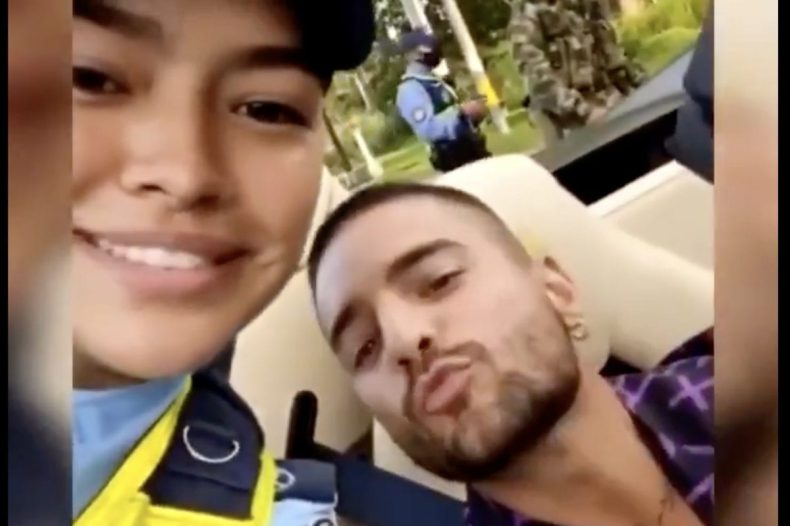 En una grabación de apenas siete segundos, la oficial posa sonriente mientras dice: «Puesto de control. El bizcocho que me encontré».»Manda un besito», ordena posteriormente la policía, y Maluma, mirando a la cámara y con otra sonrisa, contesta: «Ya me partió», para tirar un beso al aire.