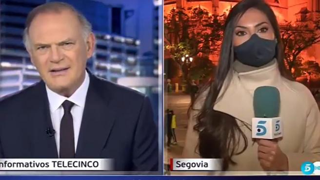 La periodista se encontraba en Segovia para informar sobre las restricciones de la hostelería impuestas por el Covid. Durante su intervención entró en pánico y salió del plano. “Los hosteleros lamentan que se abra otra vez… No, no”, dijo mientras se marchaba.