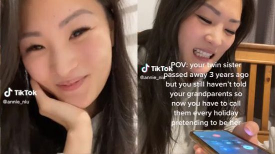 La tiktoker Annie Niu se ha hecho viral luego de contar cómo finge ser su hermana gemela al hablar con sus abuelos para que no sepan que ella falleció.