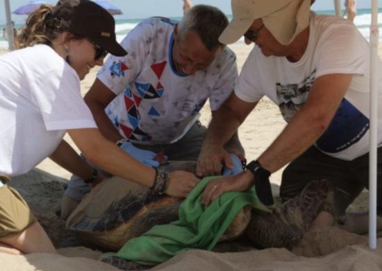 Hasta el lugar se desplazaron especialistas en tortugas marinas de la Unidad de Zoología Marina del Instituto Cavanilles, de la Universidad Politécnica de Valencia y veterinarios del Oceanogràfic. Cuando llegaron, la hembra -con 71 por 78 centímetros de caparazón- aún no había regresado al mar, con lo que se aprovechó para colocarle un emisor satélite que permitirá conocer sus desplazamientos.