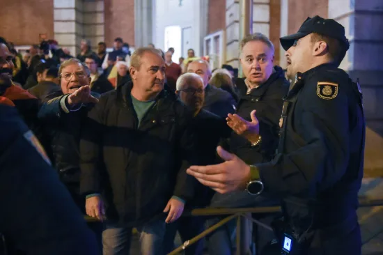Entre enseñas nacionales y con carteles exclamando ‘No al golpe de Estado’, algunos de los asistentes también se han encarado a los agentes aunque sin incidentes reseñables. También había banderas de Revuelta, la organización juvenil de la órbita de Vox, y de Democracia nacional, un partido político extraparlamentario. Se han escuchado además cánticos a favor de la unidad de España, contra el presidente Pedro Sánchez y el himno de la Falange de las JONS, el ‘Cara al sol’.