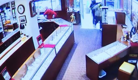 Los propietarios de la joyería, que tiene más de 50 años, declararon a KUMO News que la puerta principal está cerrada con llave durante el horario regular y si alguien quiere entrar, es necesario abrir el portón. Pero, los cuatro hombres llevaban hachas para lograr ingresar por la fuerza.