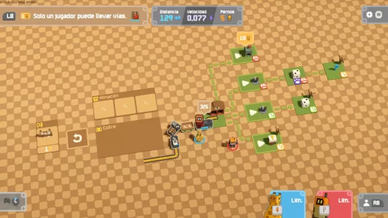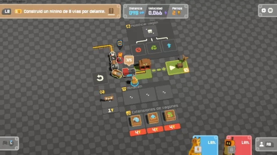 Los gráficos de Unrailed 2 están más pulidos que su entrega anterior y funciona perfectamente fluido. Está traducido completamente al castellano y no tiene actuación de voz. La interfaz es visual y el desplazamiento por los menús es moviendo tu personaje hasta la opción que escoges. Además, en los primeros niveles el juego te va guiando de forma correcta para que haya una curva de aprendizaje adecuada. Y no podríamos quedarnos sin mencionar que el juego cuenta con un editor de niveles que promete aportarnos horas de contenido extra.