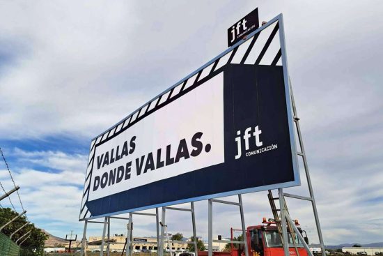 La agencia de publicidad JFT Comunicación son expertos en el diseño, planificación y gestión de campañas de publicidad exterior con vallas publicitarias. Un equipo experto se encarga de identificar las mejores ubicaciones para garantizar el máximo retorno de inversión. Además, desarrolla diseños visuales impactantes y persuasivos que aseguran captar la atención del público objetivo.