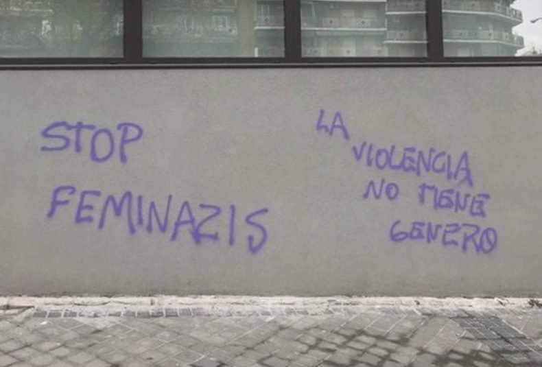 La sede de Podemos, ubicada en el distrito de Ciudad Lineal, ha sido vandalizada esta mañana con dos pintadas, de color morado, que recogen consignas como ‘Stop Feminazis’ y ‘La violencia no tiene género’.