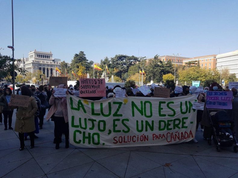 Situación a la que hay que sumar que el consumo eléctrico se vio interrumpido el pasado 26 de octubre debido a un sobrecalentamiento en una de las torretas que proporciona la red de Naturgy en esa zona. Las vecinas relatan que «apenas pueden cocinar, pasan frío, los más pequeños no pueden hacer las tareas del colegio por falta de internet en las casas y algunos de ellos prefieren no asistir a la escuela ya que les avergüenza su falta de ropa limpia».