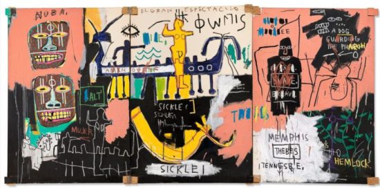 ‘El gran espectáculo (The Nile)’ (1983) de Basquiat, pintado cuando el artista tenía solo 22 años, fue comprado por última vez en 2005 por el diseñador de moda Valentino Garavani, que desembolsó 5,2 millones de dólares.