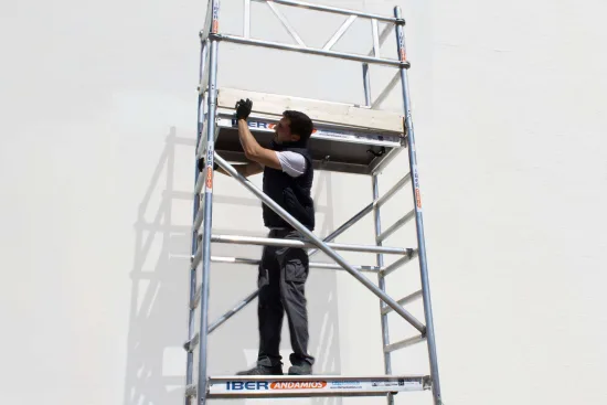 Como cada proyecto requiere de un equipo específico, IBERANDAMIOS ofrece una amplia variedad de modelos y accesorios de andamios de aluminio plegables. Entre los más populares se encuentra su gama de andamios plegables de aluminio EASY COMPACT, un andamio versátil y cómodo especialmente diseñado para interiores con una plataforma con trampilla de 150 cm y ampliable hasta 7,50 metros de altura de trabajo gracias a su montaje por módulos.