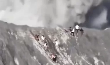 Impresionantes imágenes: unos escaladores logran escapar de un volcán en erupción en Indonesia