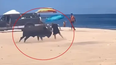 Un toro irrumpe en una playa y embiste contra los bañistas