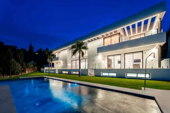 Esta maravillosa villa cuenta con luz natural desde el amanecer hasta el atardecer, que se recoge por todos su amplios ventanales, diseñada con líneas puras y limpias que expresan todo su estilo moderno y contemporáneo. Además de poseer unas increíbles vistas panorámicas que abarcan la toda la costa de Marbella. Sus interiores, concebidos hasta el más mínimo detalle, incorporan materiales naturales, un diseño minimalista, techos altos y amplios ventanales que ofrecen una sensación única de amplitud y calidez al mismo tiempo.
