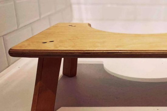 Otro elemento exclusivo de esta firma es su taburete de madera certificada indicado para aliviar las molestias ocasionadas por las hemorroides y el estreñimiento. Se trata de un mueble ergonómico que permite ir al baño en posición de cuclillas. Esto permite que el cuerpo adopte un ángulo de 35 grados que hace alinear el tronco con las piernas. Se trata de la mejor posición para ir al baño.