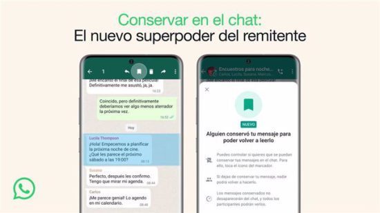 WhatsApp ha indicado que ‘Conservar en el chat’ estará disponible para todo el mundo durante las próximas semanas, y que se trata de una función que otorga «flexibilidad» para conservar los mensajes que se necesiten a la vez que mantiene la privacidad de los mensajes temporales.