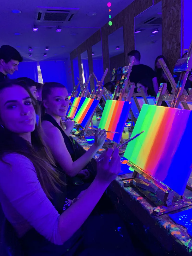 Bajo luces neón, los participantes se sumergen en un mundo donde la pintura iluminada se convierte en el medio para explorar su interioridad y expresar sus emociones más profundas. Las clases de pintura, más allá de ser una simple lección de arte, es una jornada espiritual que invita a la introspección y la catarsis, promoviendo el bienestar emocional y mental de cada asistente.