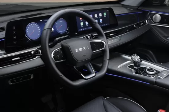 El minimalista interior logra una perfecta combinación entre elegancia, tecnología y ambiente premium, gracias a su diseño y a la calidad de los acabados y materiales. El EBRO s700 ofrece, de serie, los últimos avances en conectividad e infoentretenimiento, con un sistema de última generación que emplea el hardware y software más sofisticado, con el procesador de última generación Qualcomm Snapdragon 8155SoC y un manejo rápido y fluido de todos sus sistemas.