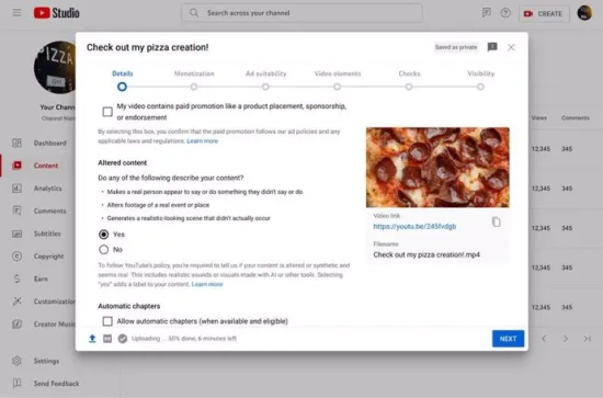 YouTube ha introducido una nueva herramienta en Studio con la que insta a los creadores de contenido a revelar si los vídeos aparentemente realistas que han compartido con su audiencia se han creado o alterado con Inteligencia Artificial (IA) generativa.