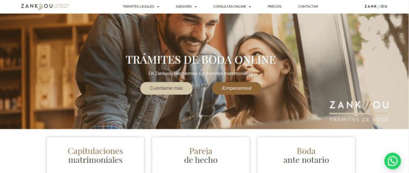 La plataforma ofrece un servicio online especializado en trámites de bodas, que permite agilizar de forma digital el papeleo para conseguir el expediente matrimonial y celebrar la boda ante notario, asesorar a los novios con los documentos requeridos y reducir el tiempo necesario para la celebración de la boda.