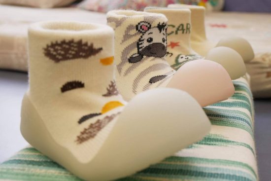 Suela antideslizante y fina, para que el bebé se sienta en el suelo pero sin riesgos.